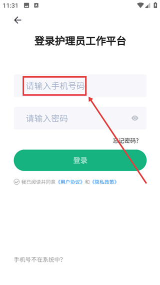 1、在手机号输入框中输入要登录的手机号码。