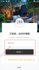 2、进入登录界面后,界面会显示【艾豪森-自然好睡眠】的标识,接着在【手机号码】输入框中填写相关信息,之后点击【验证码】按钮来获取验证信息。