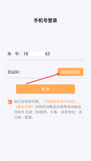 2、在账号输入框中填写手机号后,点击【获取验证码】按钮,即可触发验证码的发送流程。