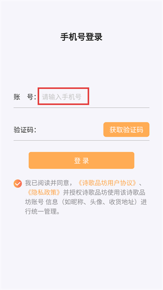 1、在【手机号登录】页面,找到【请输入手机号】的输入框,准备填写该账号对应的手机号码。