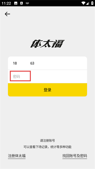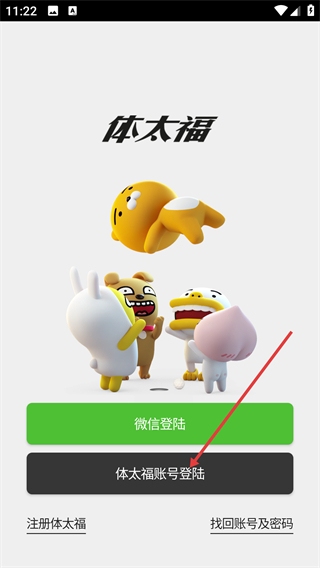 1、点击【体太福账号登陆】选项,页面将跳转至对应的账号登录交互界面。
