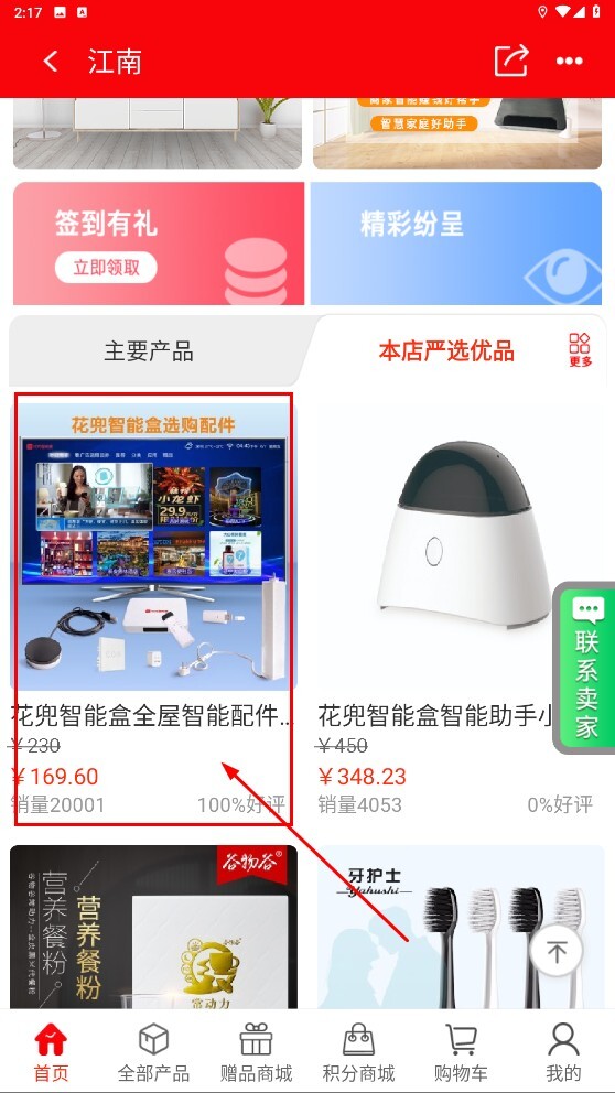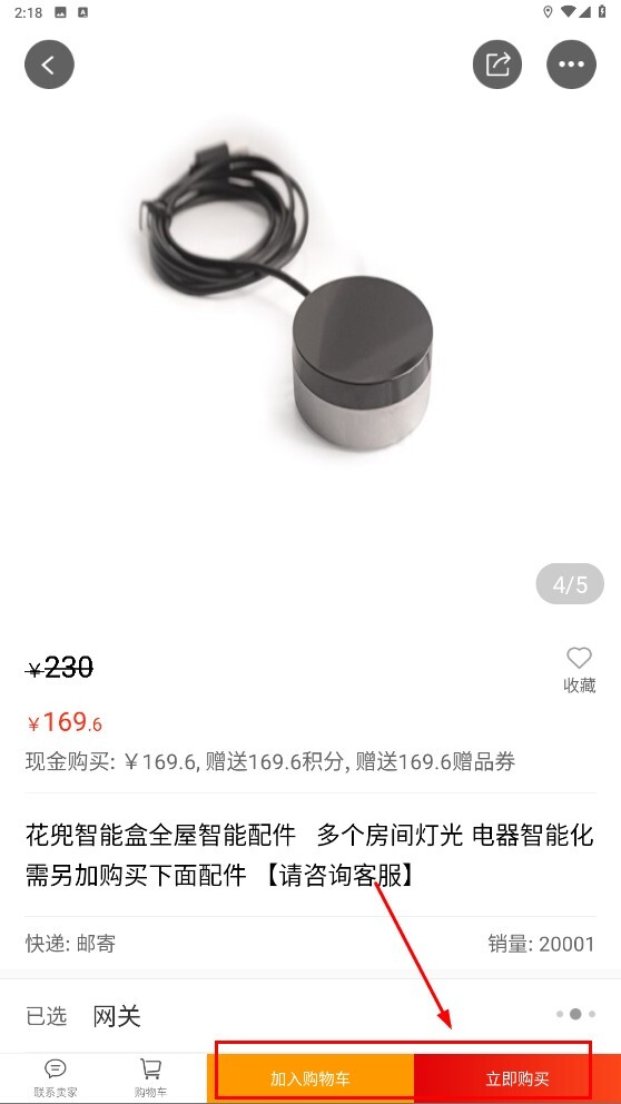 2、点击“花兜智能盒全屋智能配件”这一商品,进入其商品详情页面。