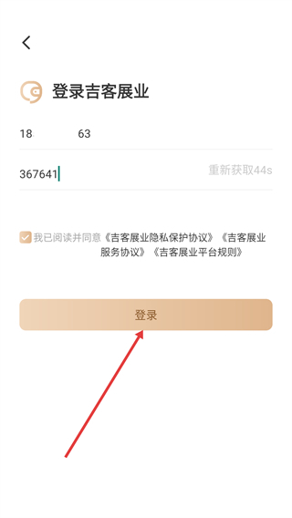 4、在确认所有信息填写准确无误后,点击【登录】按钮,即可完成吉客展业账号的登录流程。