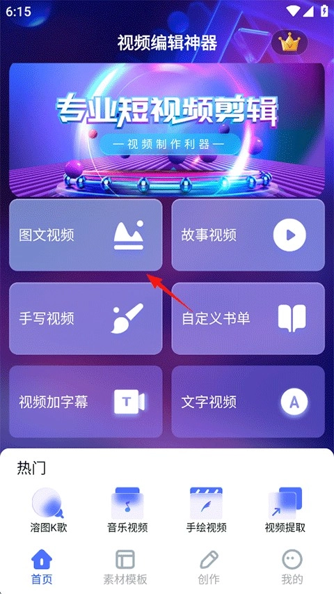 1、打开视频编辑神器,点击首页的图文视频功能;