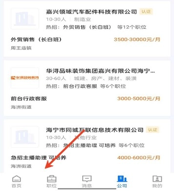 海宁招聘网是一个相当专业的人才招聘平台,平台上有大量企业发布各类招聘信息。用户可以在这里自由搜索职位,快速匹配到适合自己的岗位。点击每个职位,还能和对应的HR直接沟通交流,精准咨询相关问题,有需要的话不妨来试试吧。