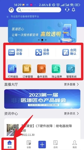1. 进入首页后,点击“添加设备”或“设备报修”选项,按照页面提示填写设备相关信息,然后提交维修申请即可。