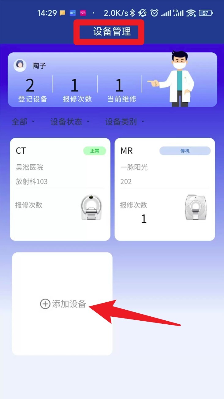 1、问题上报:当设备出现故障时,工作人员能够借助手机第一时间进行申报,科室不必再通过电话去询问故障处理的进展情况,这样既节省了时间,也让大家更安心。
