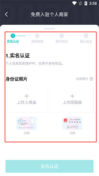 进入个人商家页面后,按流程提交相关资料就行,比如上传身份证正反面完成实名认证,接着选择服务、填写地址,等审核通过就能成为个人卖家了。