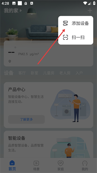 2、在功能选项菜单里点击【添加设备】选项,即可进入添加设备的流程。