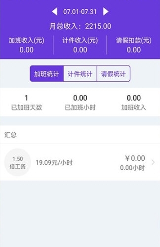 在软件里就能清楚了解自己工作日与周末加班的费用明细,方便进行计算。