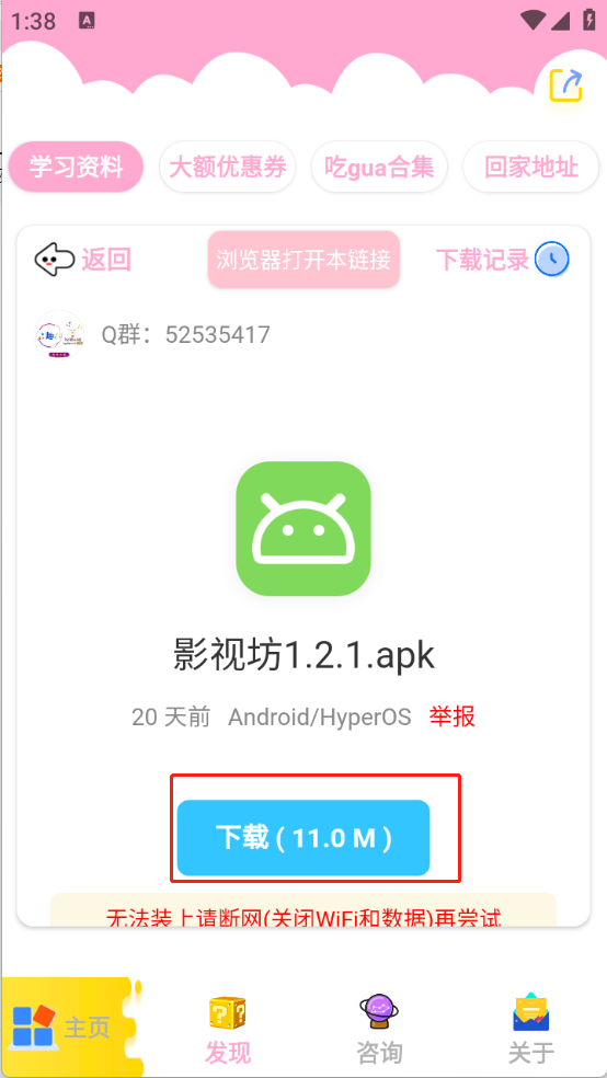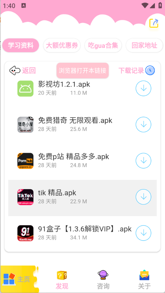 3、在“发现”页面,软件资源被做了详细的分类,涵盖了影视类、小说类和漫画类等类别。