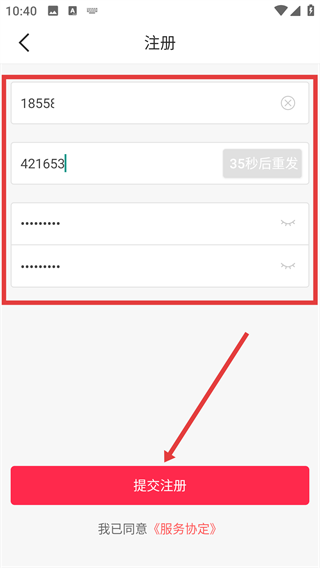 4、进入注册信息填写页面后,将相应内容填写完整,然后点击【提交注册】按钮,即可完成花冠的注册流程。