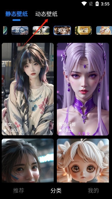 2、这里既有静态壁纸也有动态壁纸,我们就以动态壁纸为例来进行说明吧