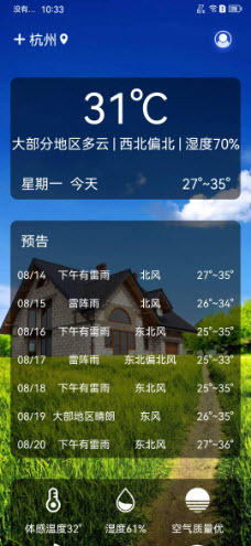 3.快速响应用户的需求,精准提供其所在地区以及未来一周的天气预报。