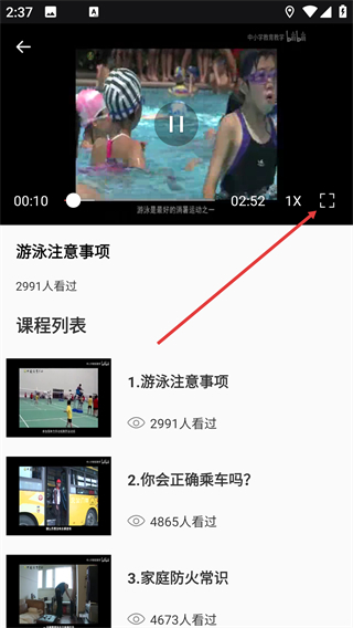 3、在课程内容页面,挑选具体的子课程(例如【游泳注意事项】),进入该子课程的学习界面。