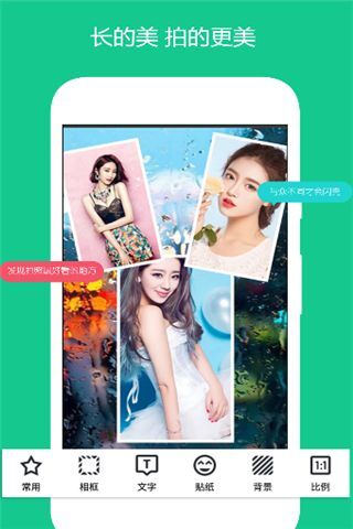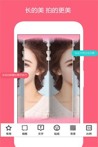 *镜像效果,当然你可以选择不同的镜像布局如左右对称,中心对称等。*丰富的贴画使你的照片与众不同。