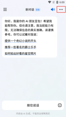 4、在新对话页面点击右上方三个点。