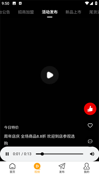 3、视频板块也提供了公告、活动发布等各类视频内容。