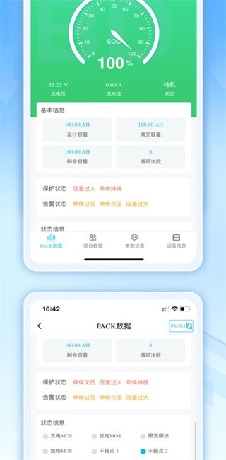 保护状态:实时呈现电池的各类保护状态,像过压、欠压、过流、过温、短路等告警信息均可在此查看。