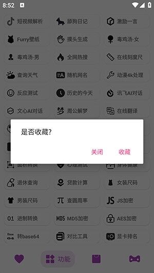进入收藏页面后,即可查看自己收藏过的功能与应用。