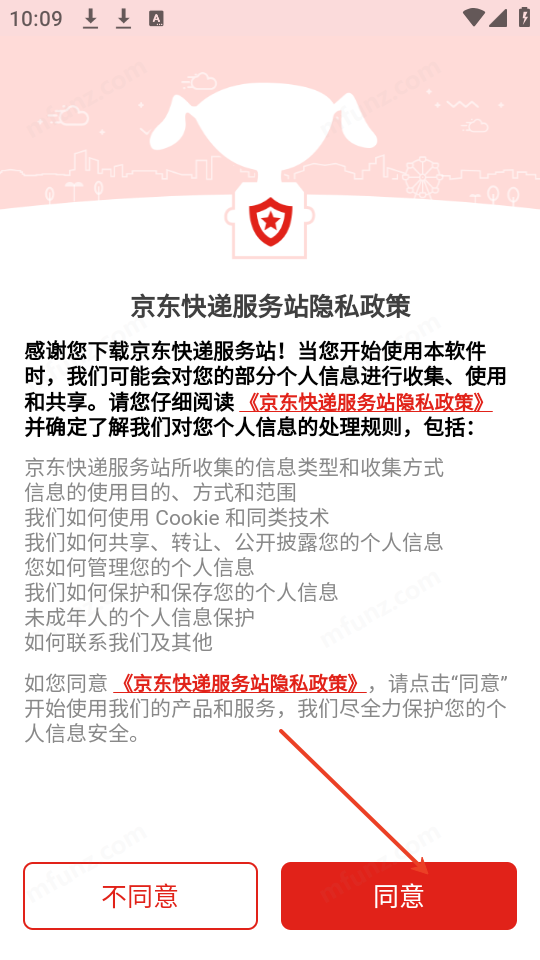 1.打开京东快递服务站后,点击同意