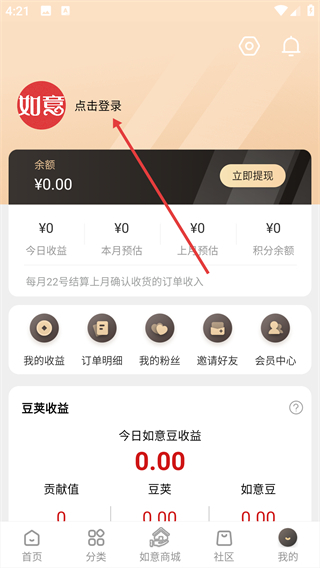 1、进入【我的】页面后,找到并点击【点击登录】选项,即可跳转至登录方式选择界面。