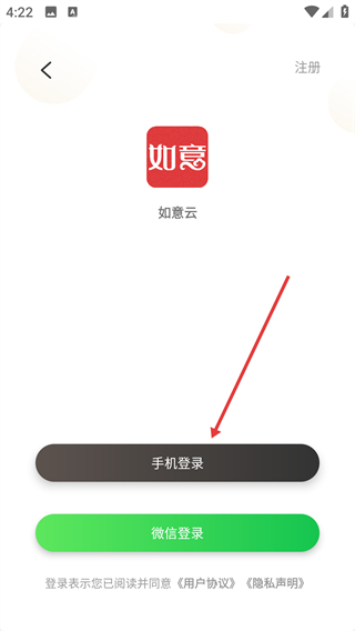 2、在登录选择界面,点击【手机登录】按钮,即可进入账号登录表单页面。