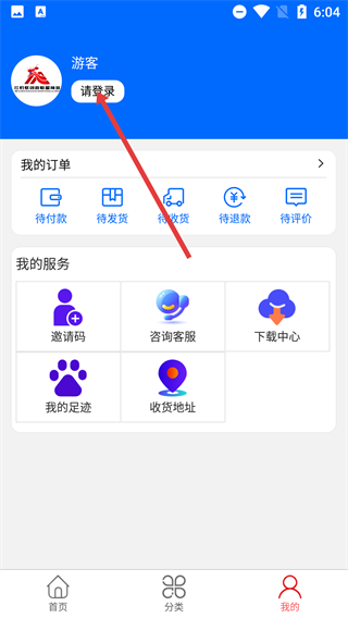 2、进入【我的】页面,当前处于游客状态时,点击左上角的【请登录】按钮,即可进入登录相关的操作界面。