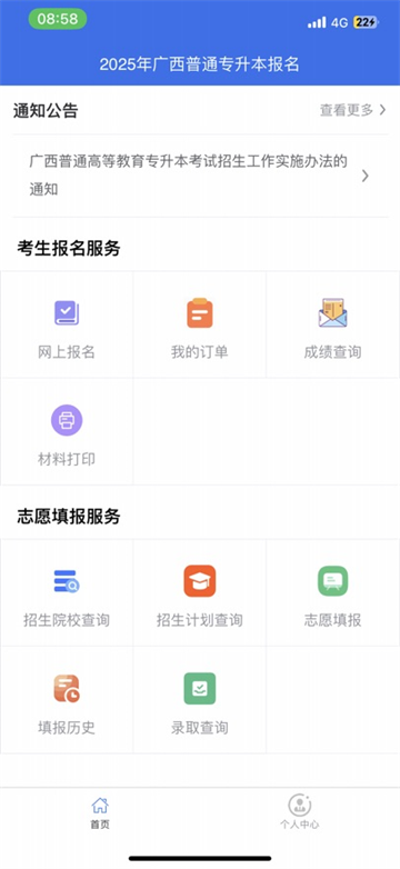广西专升本App是专门为广西本地学子打造的专升本学习软件,主要供专升本考生办理报名相关业务,支持网上注册、报名、缴费等多种功能,各类基础功能完备,能为本地考生提供便捷高效的专升本考试服务,赶紧来体验吧!