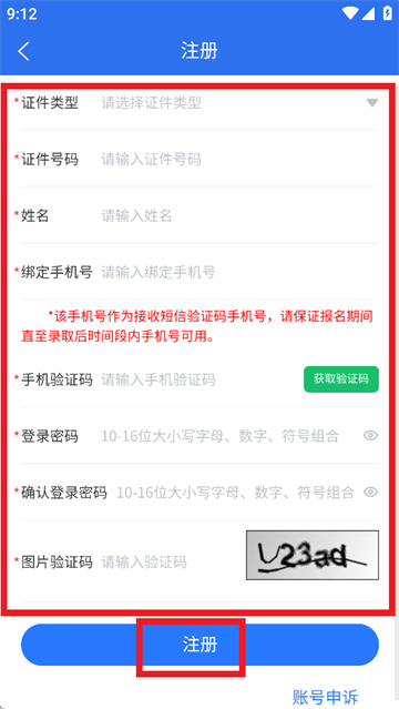 2.已有账号的用户可直接输入证件号码、密码及验证码,随后点击登录;尚未注册账号的用户则可点击立即注册。