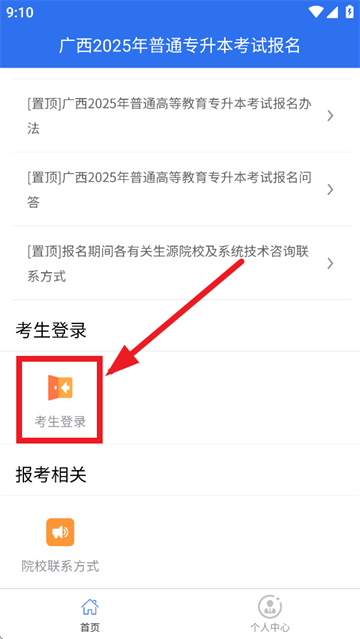 1.打开广西专升本App,进入应用选择考生登录
