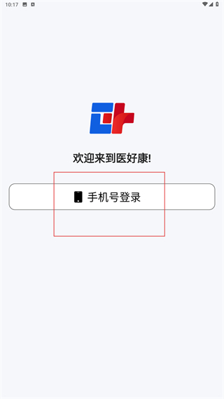 进入【医好康专业版】的欢迎页面后,找到并点击【手机号登录】按钮,即可进入手机号登录的信息填写界面。