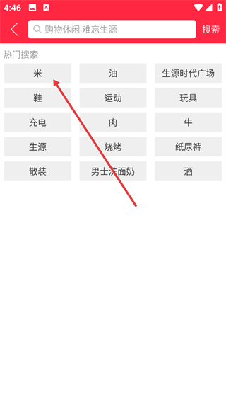 2、在搜索页面点击【热门搜索】里的【米】选项,即可显示该词条对应的商品搜索结果。