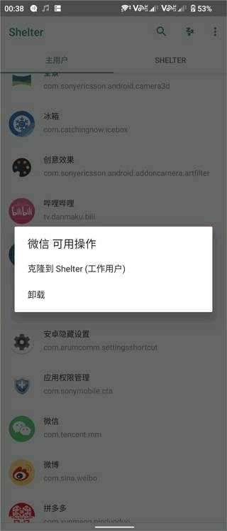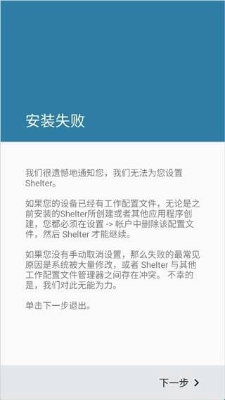 1、若用户已存在工作配置文件,需先在设置的帐户中删除该工作配置文件,Shelter才能正常运行,否则会出现失败提示。