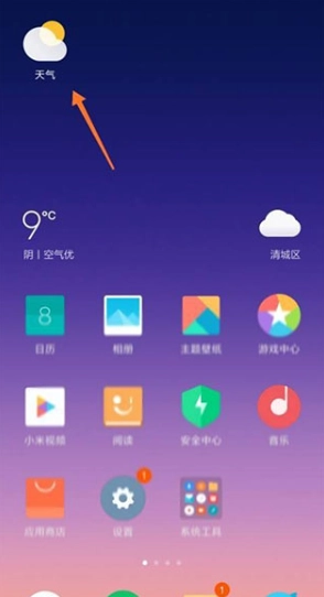 1、打开小米天气。