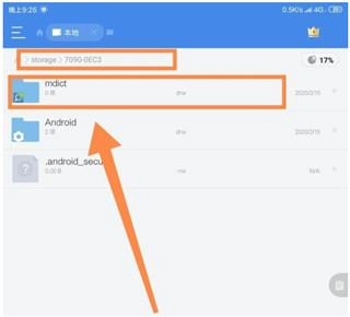 可以看出mdict的额外词库目录是:/storage/7090-0EC3/mdict