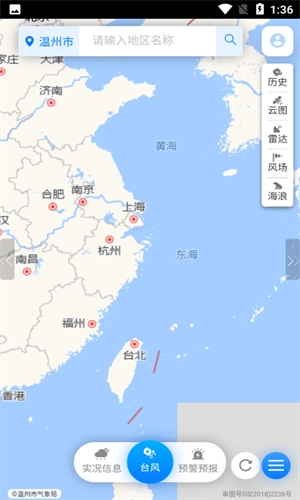 3、然后点击上面的小点,就可以查看台风的路线了。