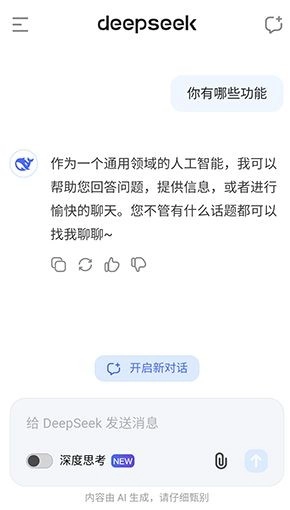 DeepSeek满血版应用的核心优势在于其强大的自由对话能力。用户无需拘泥于固定指令或复杂操作,只需以自然语言提问,AI即可理解上下文语境,进行多轮深度对话,像一位知识渊博的朋友般与你轻松交流。