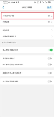 4、接着在自定义设置页面里点击javascript扩展功能。