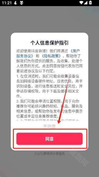 1、并打开抖音商城,点击“同意”