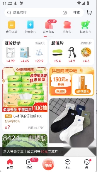 新用户优惠政策:对于新用户来说,即使您已经是抖音的用户,只要在抖音商城版上首次下单,仍然会被视为新用户,并享有相应的优惠活动.