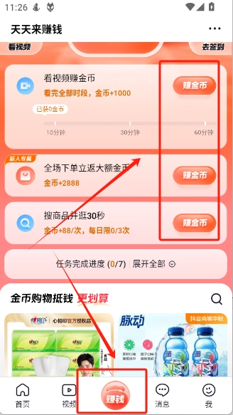 6、“赚钱”模块里设有不少赚钱任务,大家只要依照要求完成这些任务,就能获取丰厚的金币奖励。