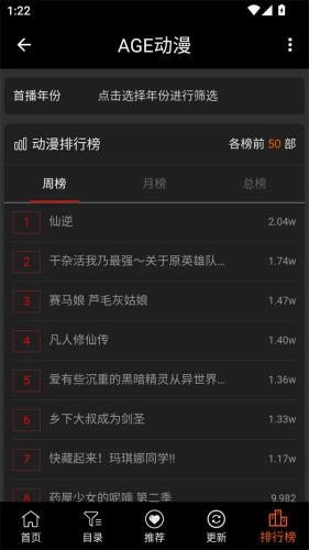 5、排行榜页面:每年会对前75部动漫进行排名展示。
