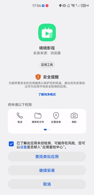 3、第三步,勾选“已了解此应用未经检测……”的选项,接着点击“继续”按钮。(若弹出安全提醒,无需担心)