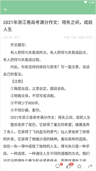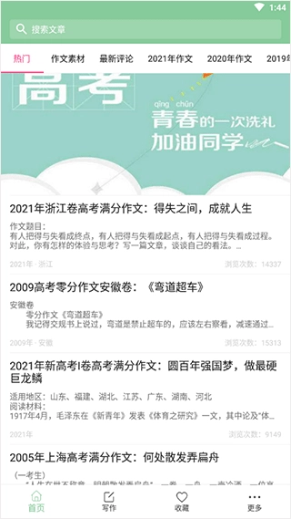 1、满分作文:涵盖了全国高考、北京高考、广东高考、湖南高考等31个省市的满分作文。