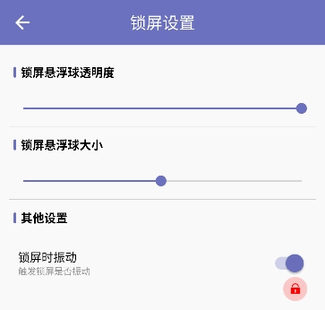 - 锁屏设置:可自定义调整锁屏悬浮球的透明度和大小。