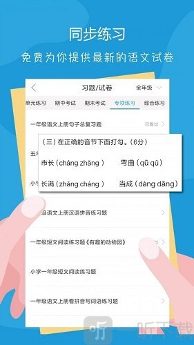 这款软件覆盖了小学生全阶段的语文课程,采用专业的学习方法,支持实时听写功能,还能进行习题测试。总之,它是一款十分便捷的语文教学软件,在家使用能减轻家长的辅导压力,让孩子轻松学习语文知识!