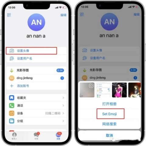 首先打开手机上的纸飞机应用,点击“设置头像”选项,然后选择“SetEmoji”。