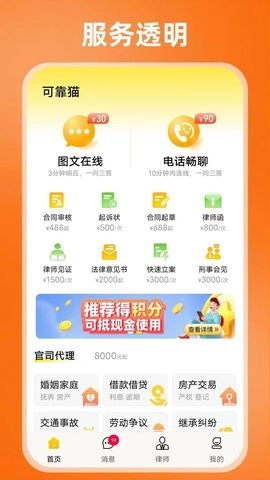 可靠猫是一家专注于提供真实在线律师答疑的法律服务平台。用户可通过图文、文字、在线沟通、电话等多种途径进行法律咨询。平台还能提供专业的合同代写、律师函、投诉文书等各类法律文书代写服务,以及快速立案等便捷服务,有相关需求的朋友欢迎咨询。