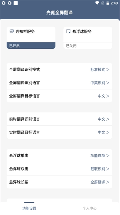 3、此外还具备截取识别、拍照识别、全屏翻译、文本翻译等功能,用户可根据自身需求,选择相应功能使用。
